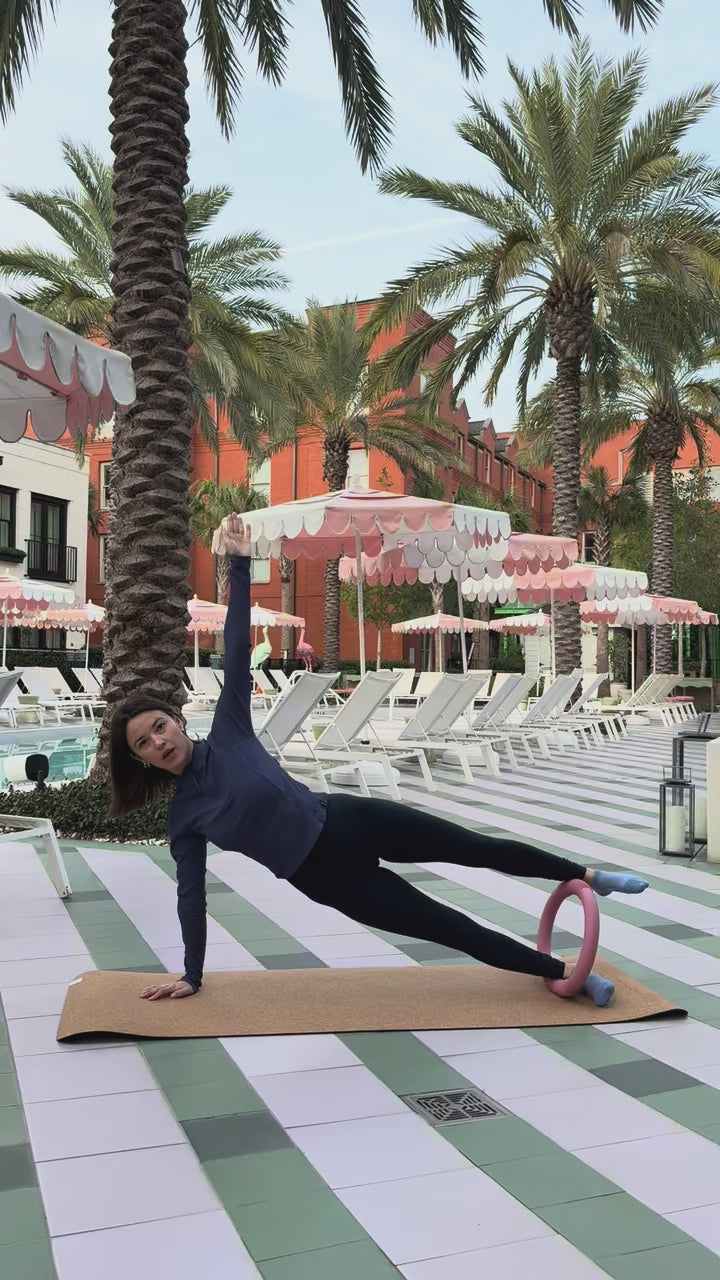 The weighted Pilates ring turns familiar movements into stronger, more demanding work.